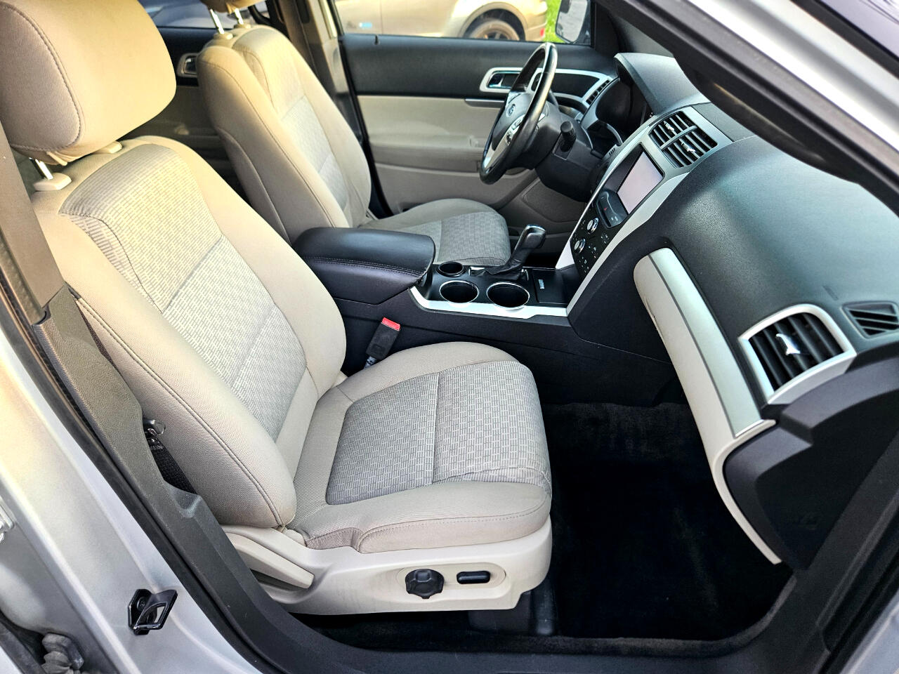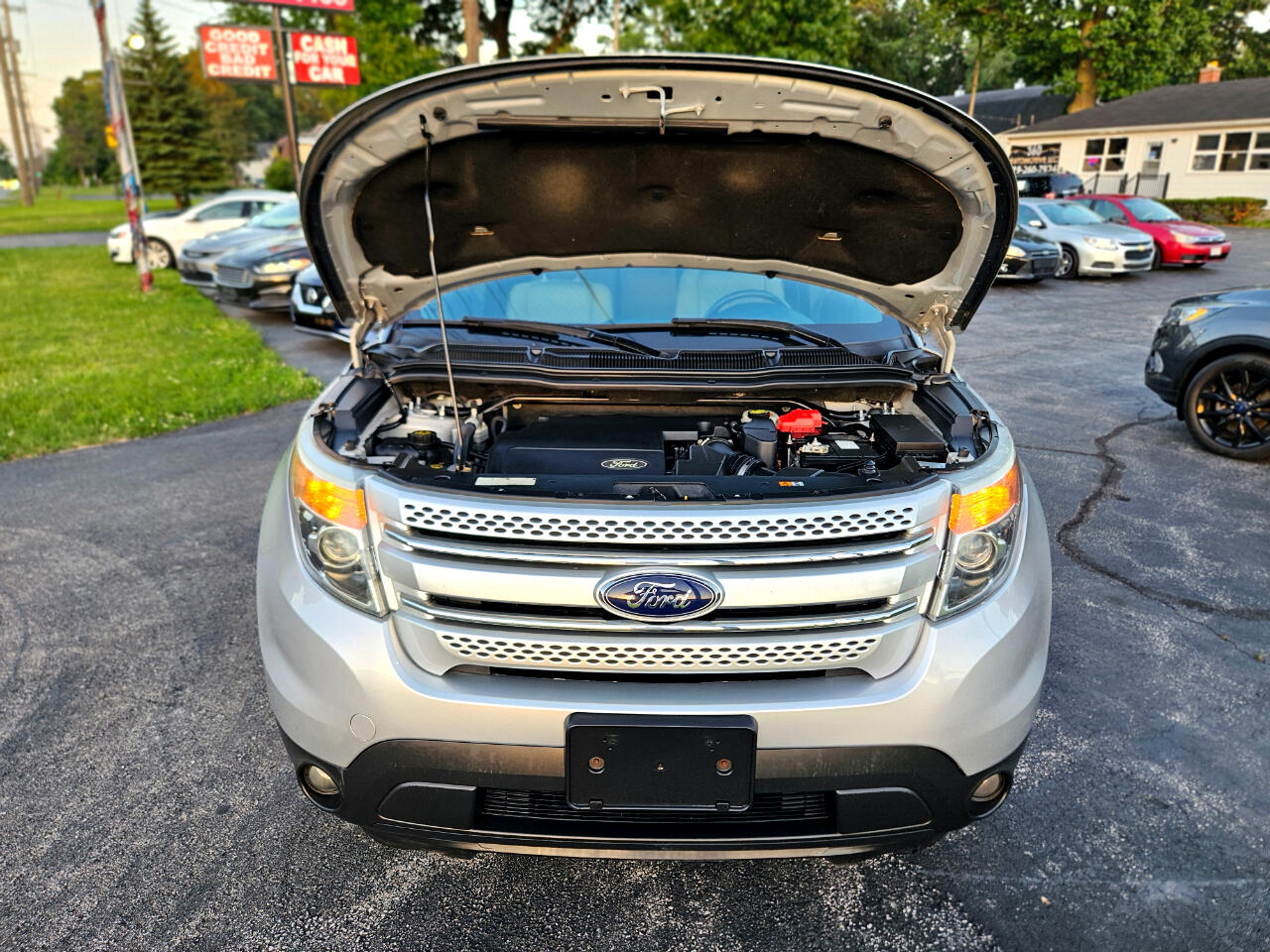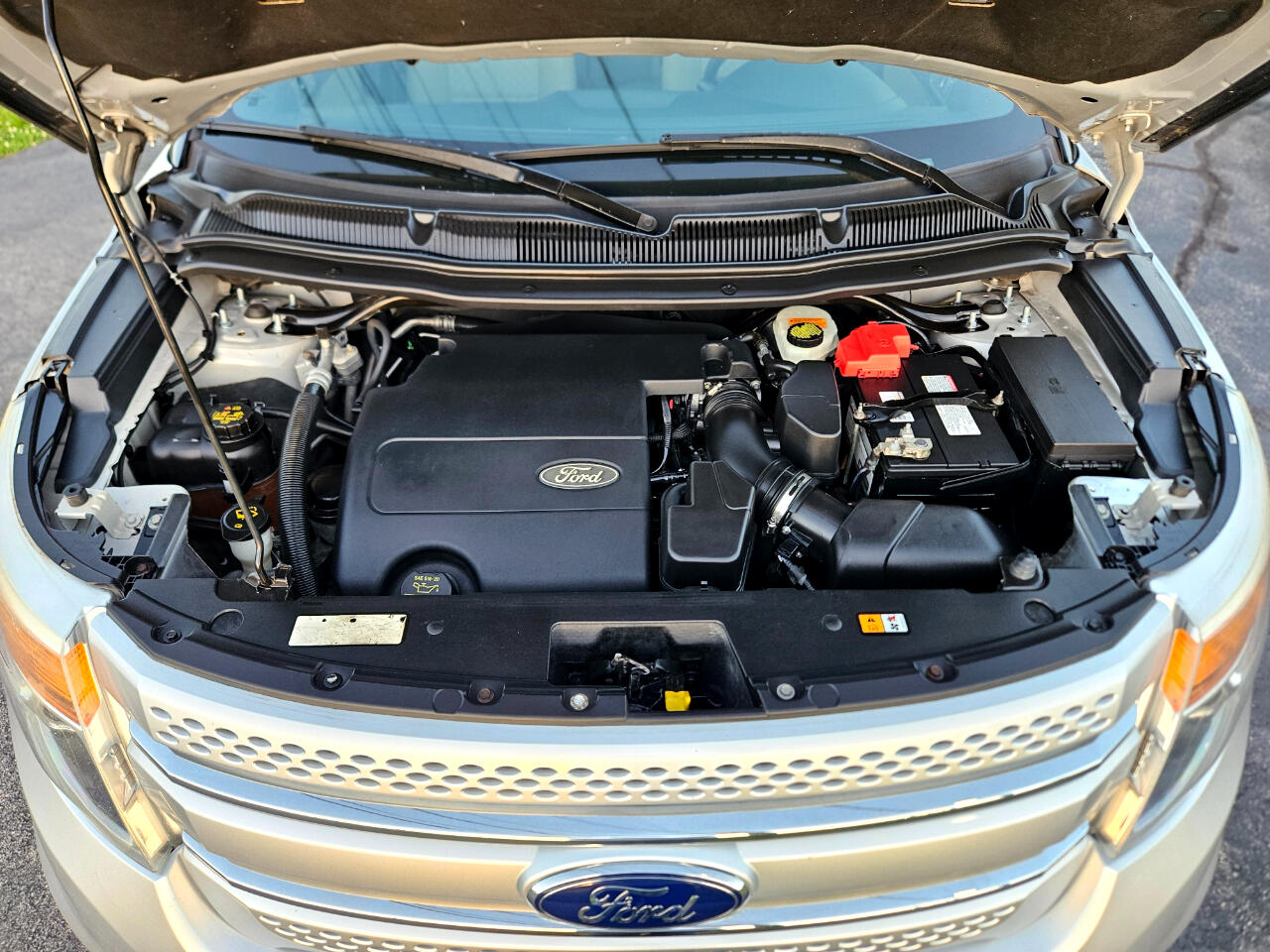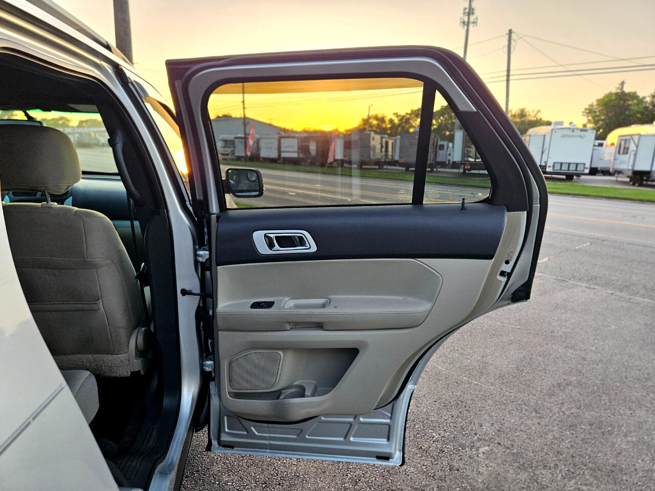 Cruise through town in style with this sleek Silver 2013 Ford Explorer. This beauty is powered by a 3.5L Ti-VCT V6 engine and features front wheel drive for smooth handling. The chrome accents and satin silver finish grille give it a touch of luxury, while the roof rack side rails add a hint of adventure. Equipped with fog lamps and LED tail lamps, this Explorer not only looks sharp but also ensures visibility on the road.