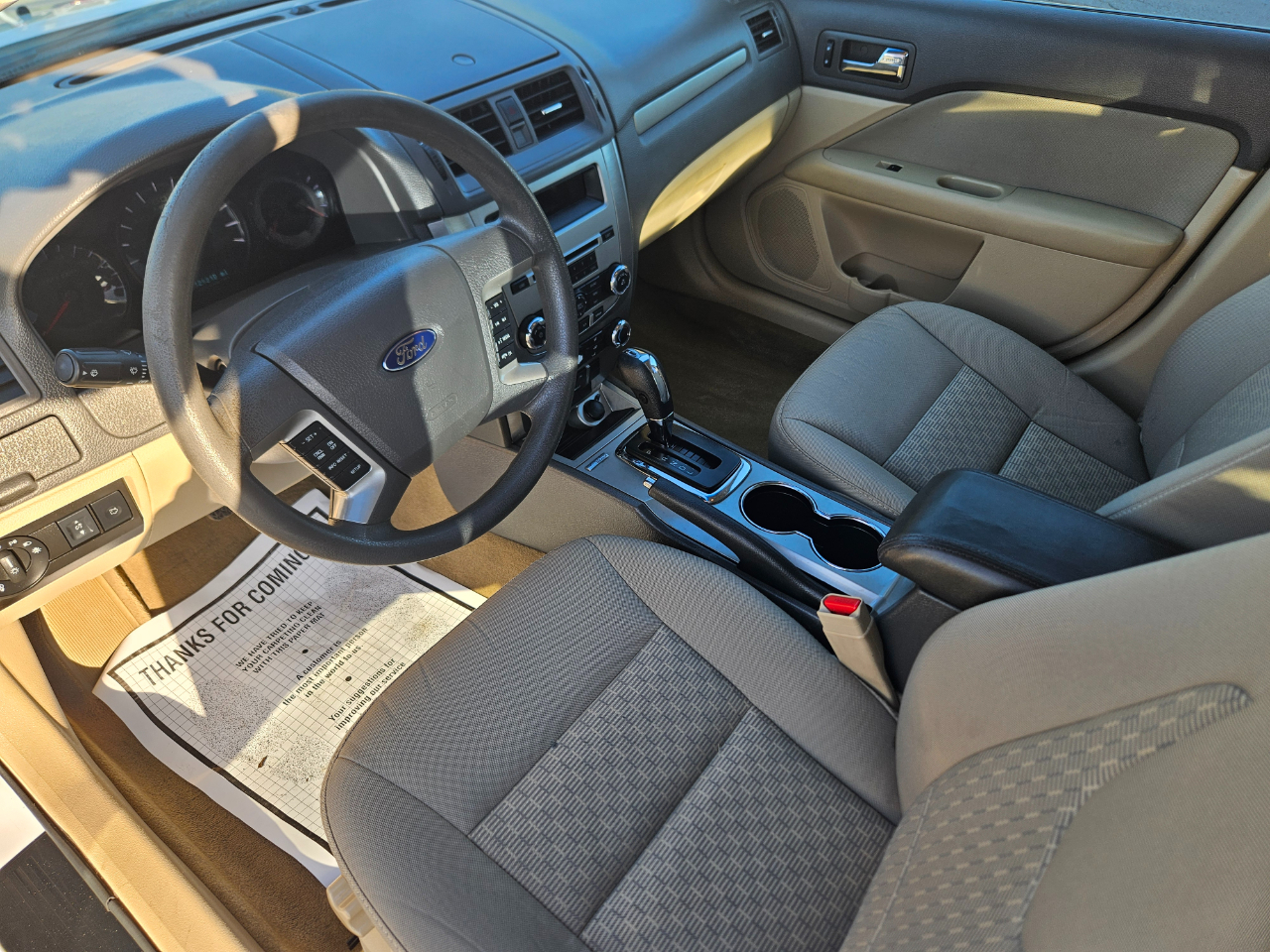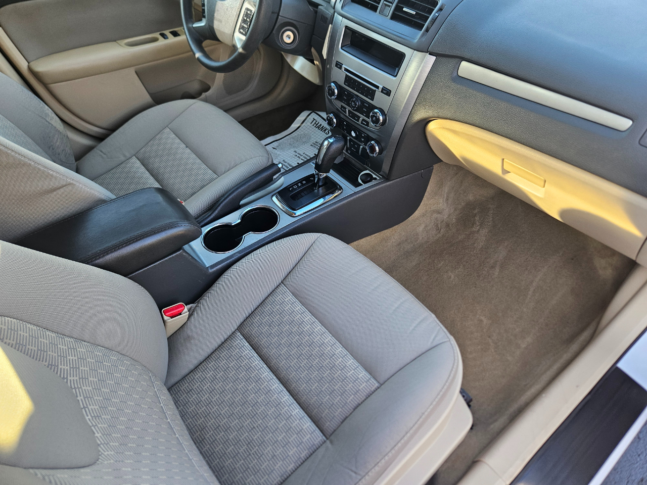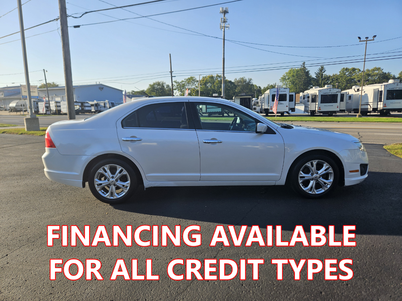 Get ready to hit the road in style with this sleek White 2012 Ford Fusion! Equipped with a 2.5L 16V I4 Duratec engine, this beauty offers a smooth ride with impressive fuel efficiency. The front wheel drive ensures easy handling, while the pwr rack & pinion steering with electric variable assist makes driving a breeze. Whether you're cruising through the city or embarking on a road trip, the 4-wheel anti-lock disc brakes provide reliable stopping power.