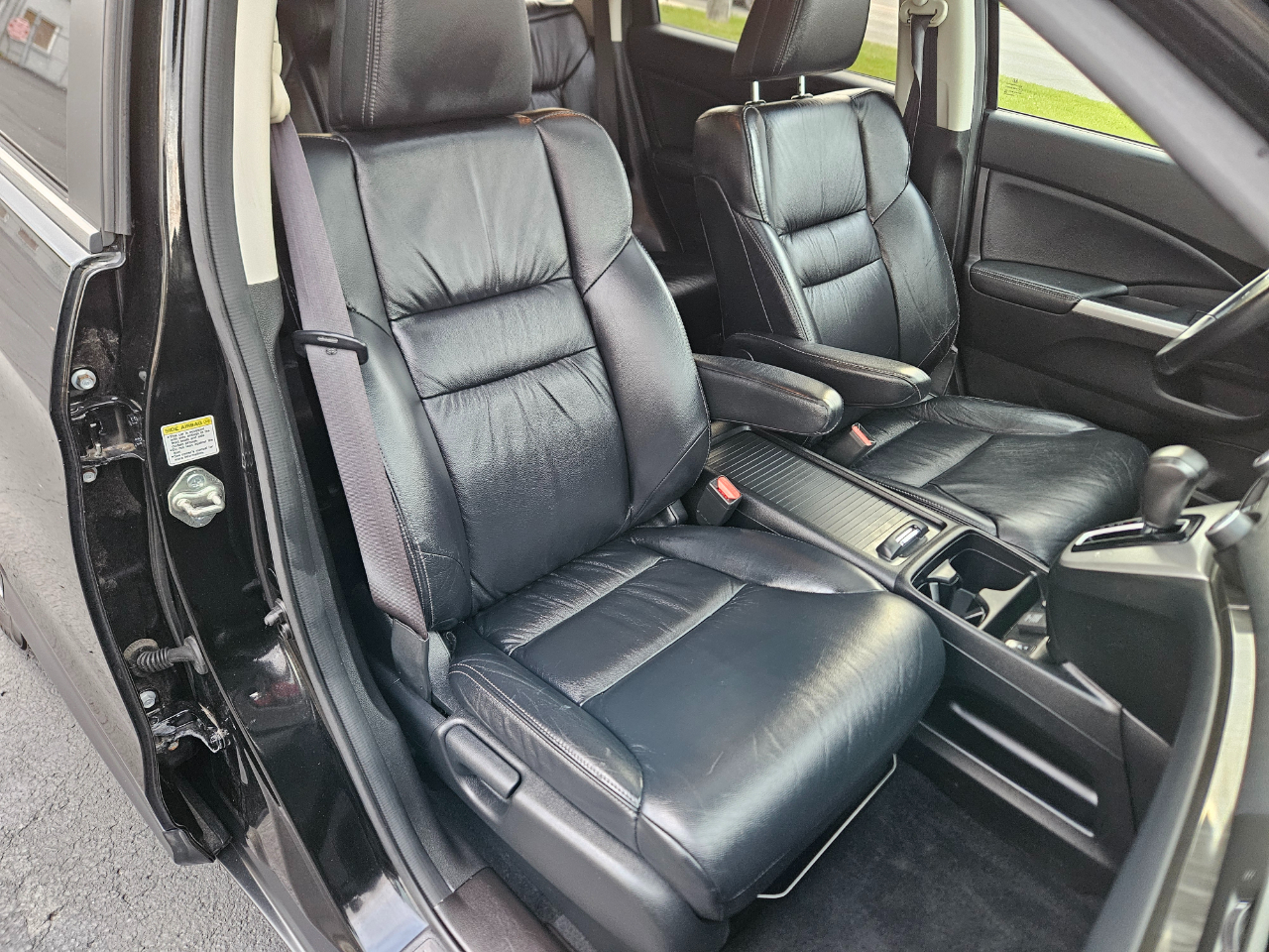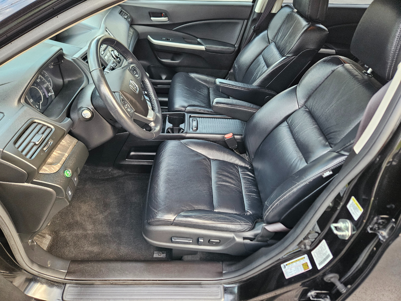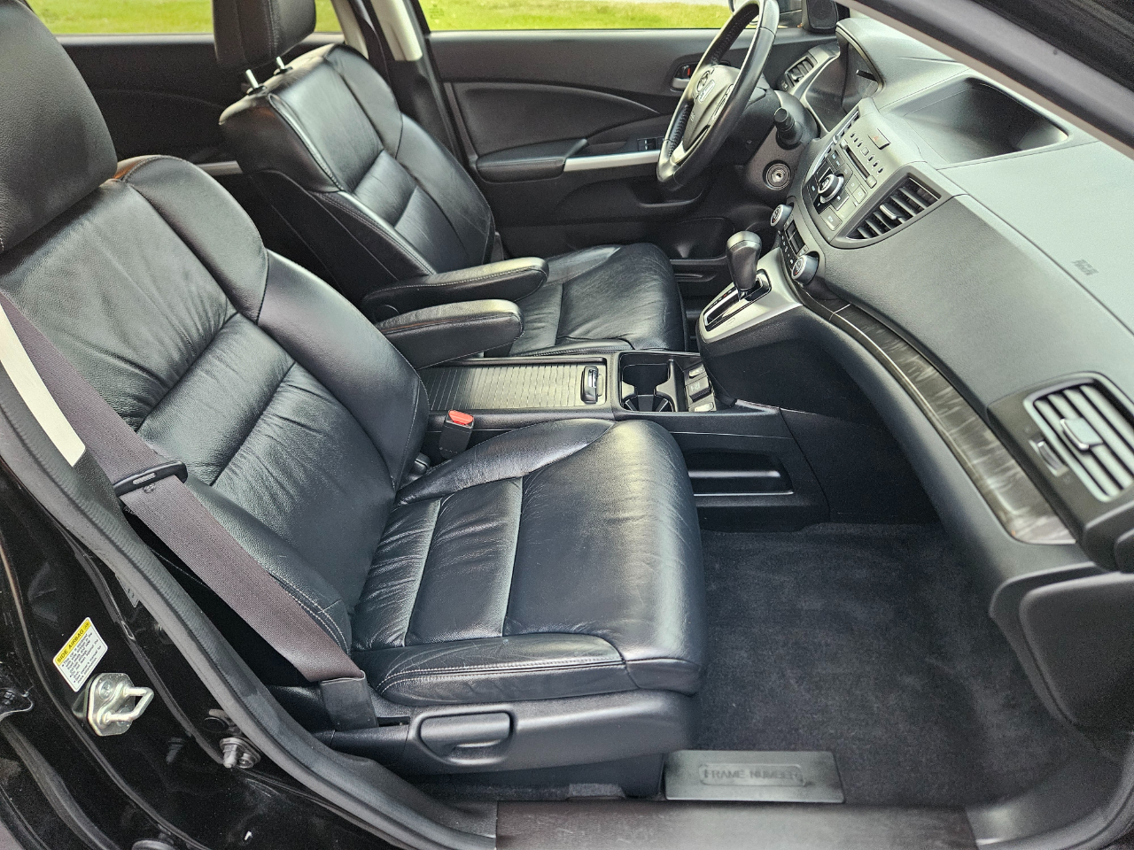 This sleek black 2014 Honda CR-V is a versatile and reliable ride that's ready to tackle any adventure with ease. With a comfortable and spacious interior, including heated front bucket seats and Bluetooth handsfreelink wireless phone connectivity, every drive will be a pleasure. This CR-V is equipped with a powerful 2.4L I-4 16-Valve DOHC i-VTEC engine that ensures a smooth and efficient performance, paired with a 5-speed automatic transmission for seamless shifting. The automatic full-time all-wheel drive capability provides added confidence for navigating various road conditions. With a stylish design featuring chrome accents, fog lamps, and a sunroof, this CR-V stands out on the road. The cargo space is practical and easily accessible, with a roll-up cargo cover to keep your belongings secure. Safety is a top priority with side impact beams, airbags throughout the cabin, and a convenient backup camera for added visibility. Get behind the wheel of this Honda CR-V and experience the perfect blend of comfort, performance, and style on your next journey.