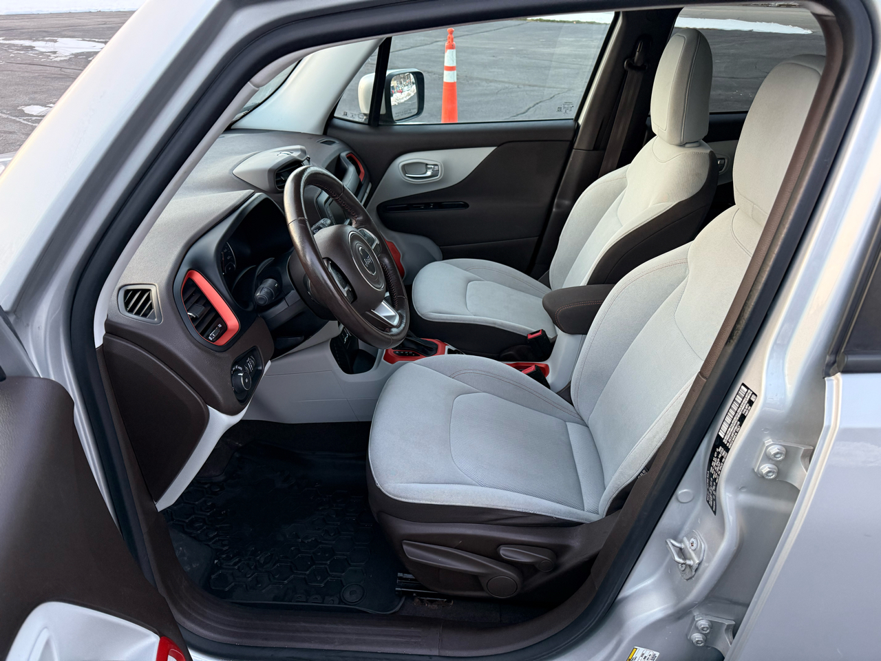 Buckle up and get ready to explore the great outdoors in style with this sleek 2015 Silver Jeep Renegade! This adventurous ride is equipped with a powerful engine that will have you cruising effortlessly down the highway or tackling tough terrain with ease. The spacious interior provides the perfect combination of comfort and functionality, making every journey a joy. With convenient Bluetooth connectivity, you can blast your favorite tunes as you conquer the road ahead. The unique design of this Jeep Renegade is sure to turn heads wherever you go, making you the envy of all your friends. So whether you're heading out for a weekend camping trip or simply running errands around town, this Jeep Renegade is ready to take you on your next exhilarating adventure.